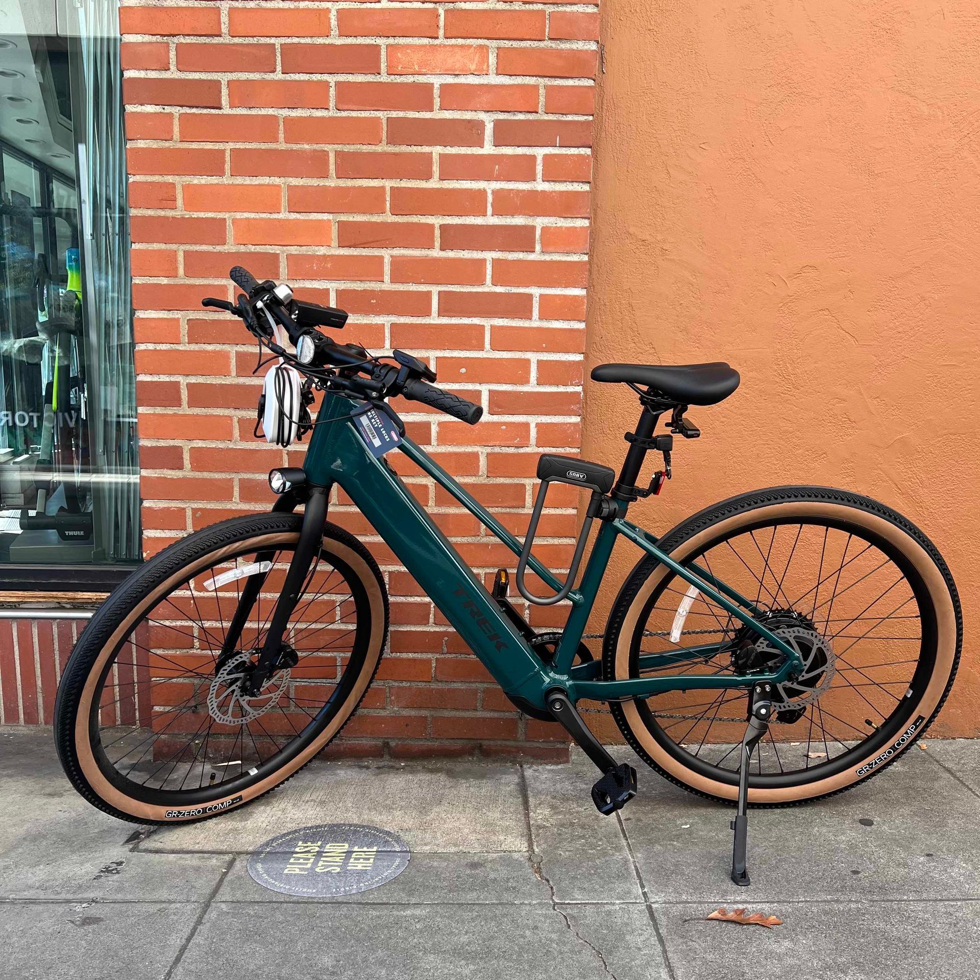 This model has an aluminum external seat tube mounted battery with a top speed of 20 mph and battery range of up to 38 miles. This means you can ride it to work and back without having to charge it at your work. There is no live or work preference for borrowing this model in our program.